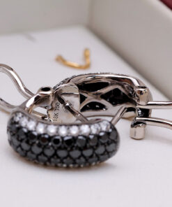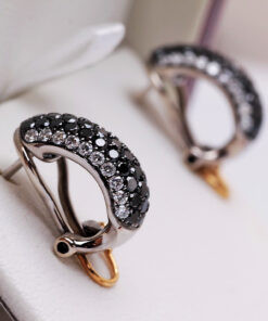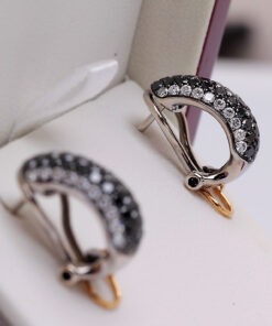 Exkluzivní náušnice z bílého zlata 0,750, které oslní elegancí a rafinovaností. Jejich povrch zdobí až 106 diamantů - 40 klasických s výjimečnou čistotou a 66 černých, které šperku dodávají výrazný, smyslný charakter. Jemný tvar a kontrastní barvy kamenů vytvářejí moderní a zároveň nadčasový design. Ideální pro ženy, které chtějí svému stylingu dodat nádech luxusu.