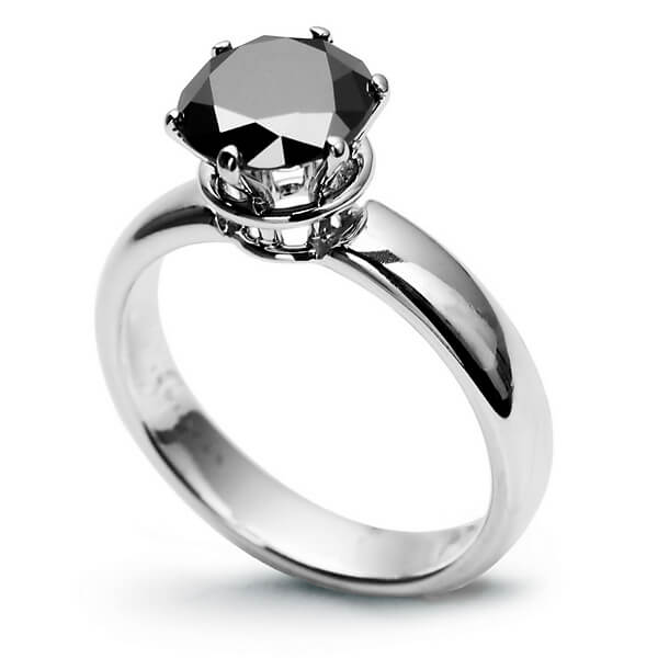 Úžasný zásnubní prsten Mephisto z bílého zlata 0,750, jehož srdcem je působivý přírodní černý diamant o hmotnosti přibližně 1,70 ct.