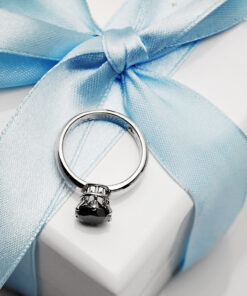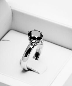 Ohromující zásnubní prsten Mephisto z bílého zlata ryzosti 0,750 s výrazným přírodním černým diamantem o hmotnosti přibližně 1,60 ct. Kámen je vsazen do šesti krapů a jeho temný lesk symbolizuje sílu a eleganci. Obroučka široká 3,6 mm podtrhuje unikátní charakter šperku. Pro ženy, které se nebojí být jedinečné.