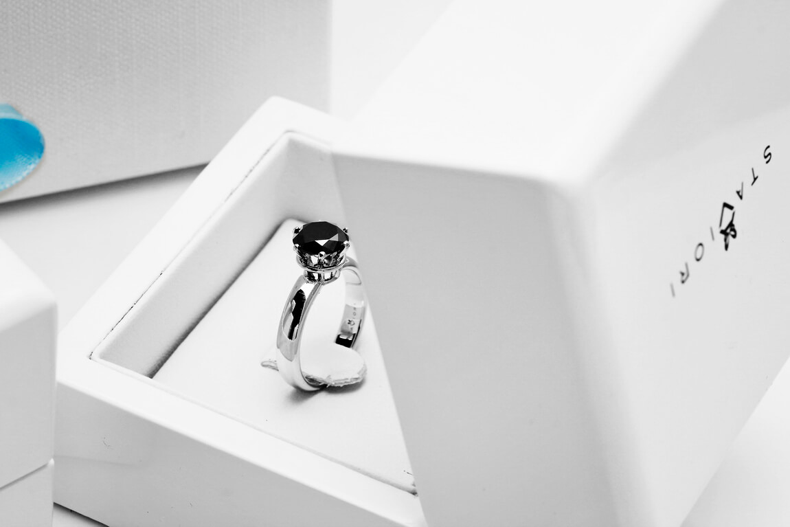 Exkluzivní | výjimečný prsten s černým diamantem z bílého zlata 750