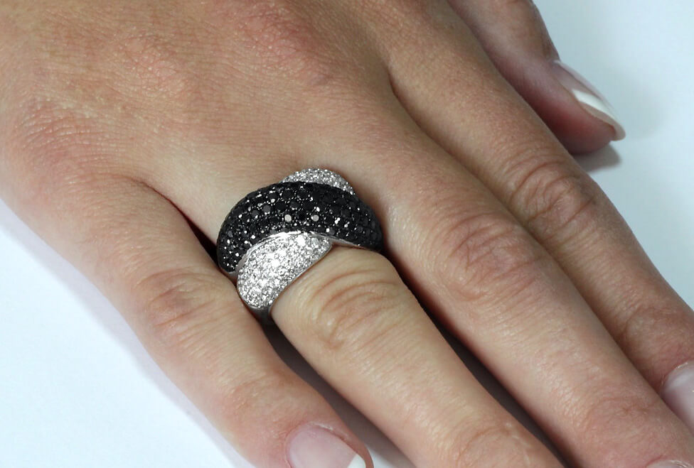 Exkluzivní | prsten s černými a bílými diamanty z 18karátového zlata