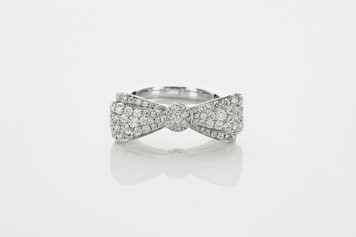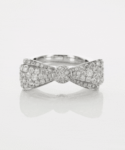 Okouzlující a fenomenální zásnubní prsten z bílého zlata 0.750, jehož tvar ve tvaru mašle přitahuje pozornost. Je osázen až 107 diamanty o celkové váze 1,22 ct a potěší jemným leskem a romantickým charakterem. Je dokonalou nabídkou pro ženy, které ocení originální styl, lehkost a eleganci uzavřenou v jedinečném tvaru. Šperk plný půvabu, který symbolizuje lásku v její nejkrásnější podobě.