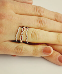 Wyjątkowy komplet trzech pierścionków wykonanych z żółtego, białego i różowego złota próby 0,750, który urzeka subtelnym blaskiem aż 175 diamentów o łącznej masie 1,56 ct. Każdy z pierścionków tworzy integralną część eleganckiej kompozycji, którą można nosić razem lub osobno – w zależności od okazji i stylu. Luksusowa forma, najwyższej klasy kamienie oraz kunsztowne wykonanie czynią ten zestaw doskonałym wyborem dla kobiet ceniących biżuterię o niepowtarzalnym charakterze.