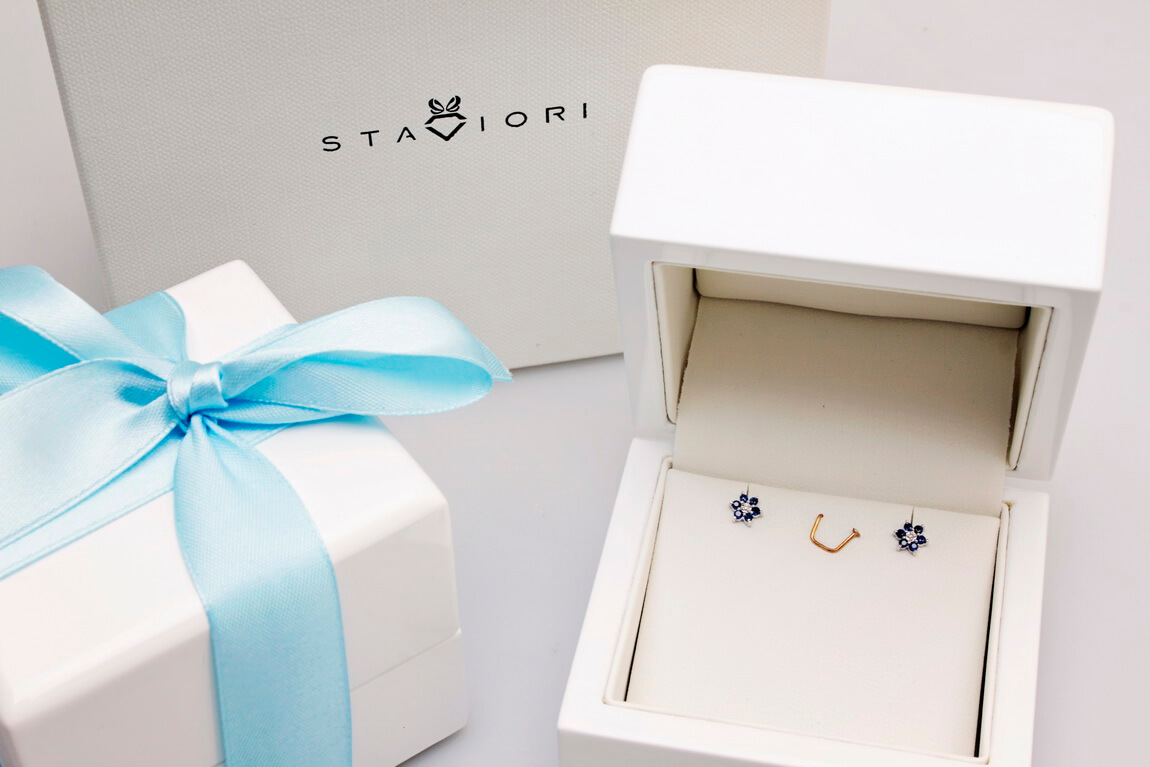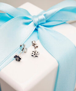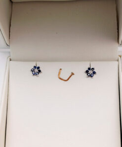 Subtelne kolczyki w kształcie kwiatuszków, wykonane z białego złota próby 0,585. Każdy z nich ozdobiony jest sześcioma naturalnymi szafirami o głębokiej, niebieskiej barwie oraz centralnym diamentem w szlifie brylantowym. To klasyczna, ale jednocześnie pełna wdzięku forma, która doskonale sprawdzi się na co dzień oraz jako elegancki dodatek na wyjątkowe okazje. Zmysłowe połączenie chłodnych tonów szafirów i białego złota nadaje im ponadczasowy charakter.