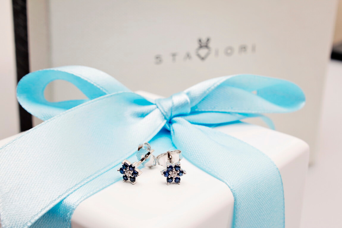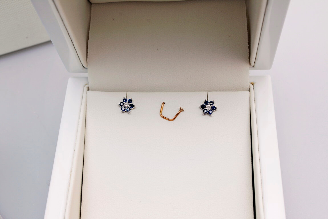 Květinové náušnice se safíry a diamanty KBD0500S