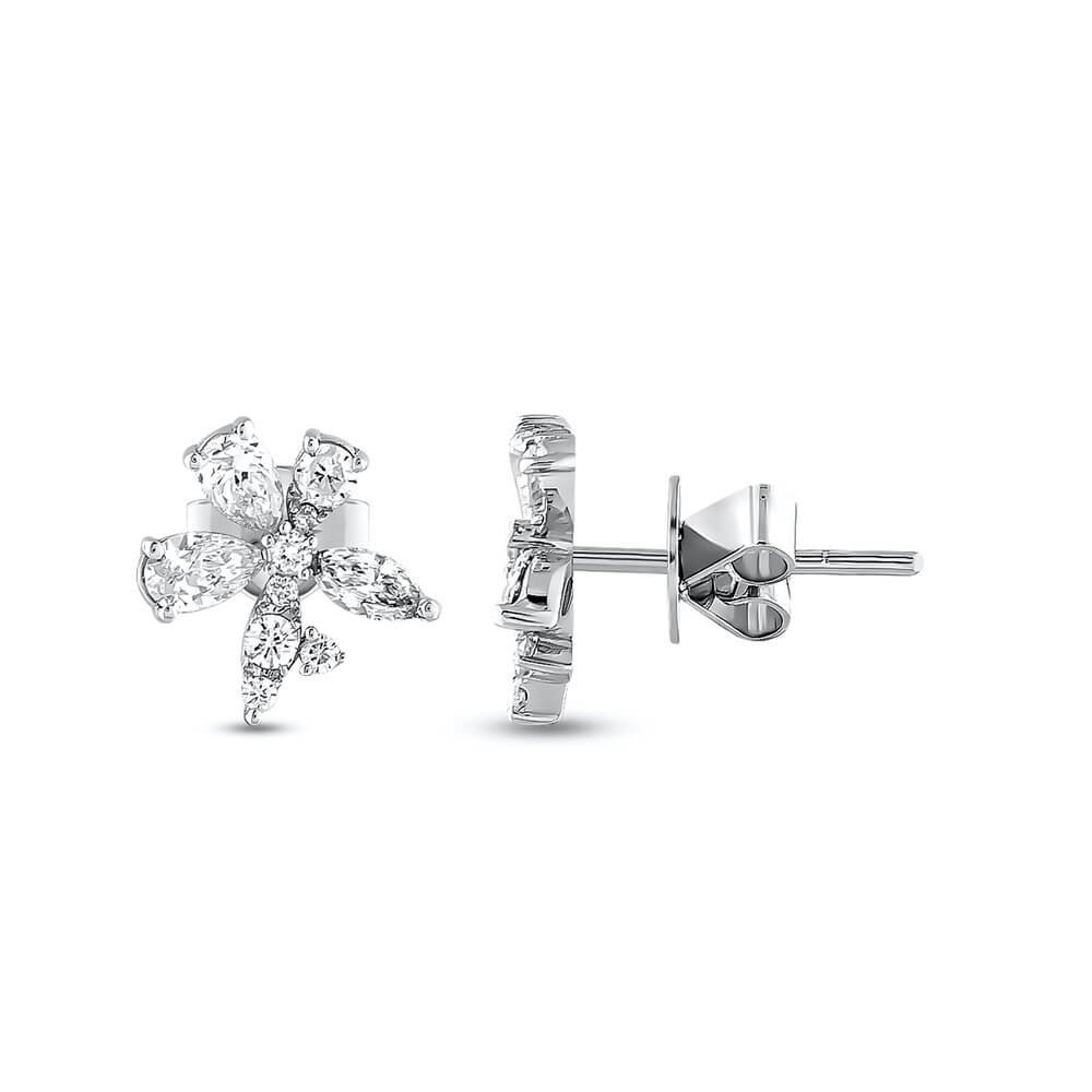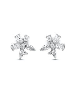 Te olśniewające kolczyki z białego złota 18-karatowego zachwycają swoim kwiatowym motywem, który powstał z połączenia różnych szlifów diamentów. Subtelne markizy, efektowne gruszki i błyszczące brylanty tworzą kompozycję pełną blasku i lekkości. Idealny wybór dla kobiet ceniących elegancję i wyrafinowany styl. Biżuteria, która podkreśla wyjątkowe chwile i dodaje uroku każdej stylizacji.