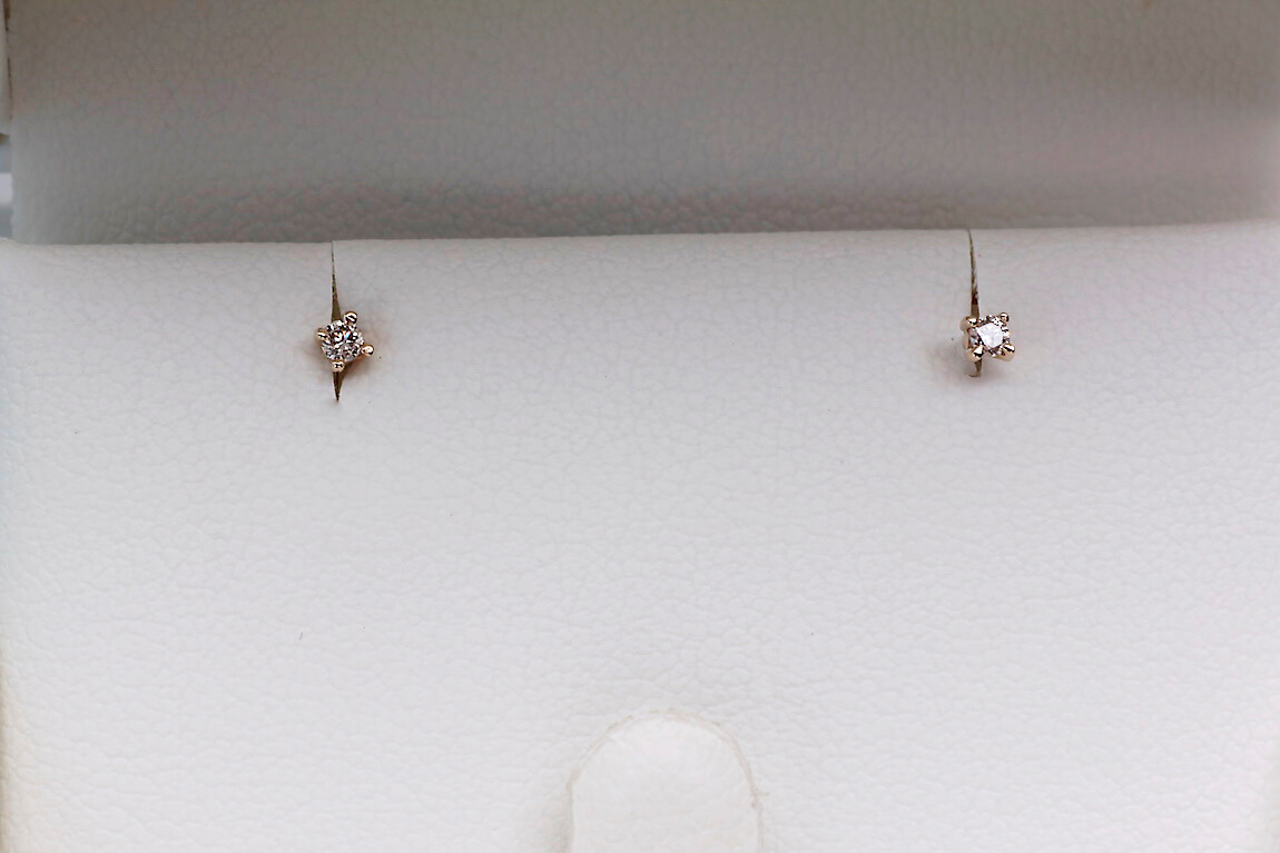 Staviori Naušnice. 2 Diamanty, briliantový výbrus, váha 0,05 ct., barva M-O, čistota I1-I2. Žluté Zlato 0,585. Šířka 1,5 mm. Tloušťka 2 mm. Možná výměna diamantů na krásné bílé G / Si za poplatek +1500 CZK