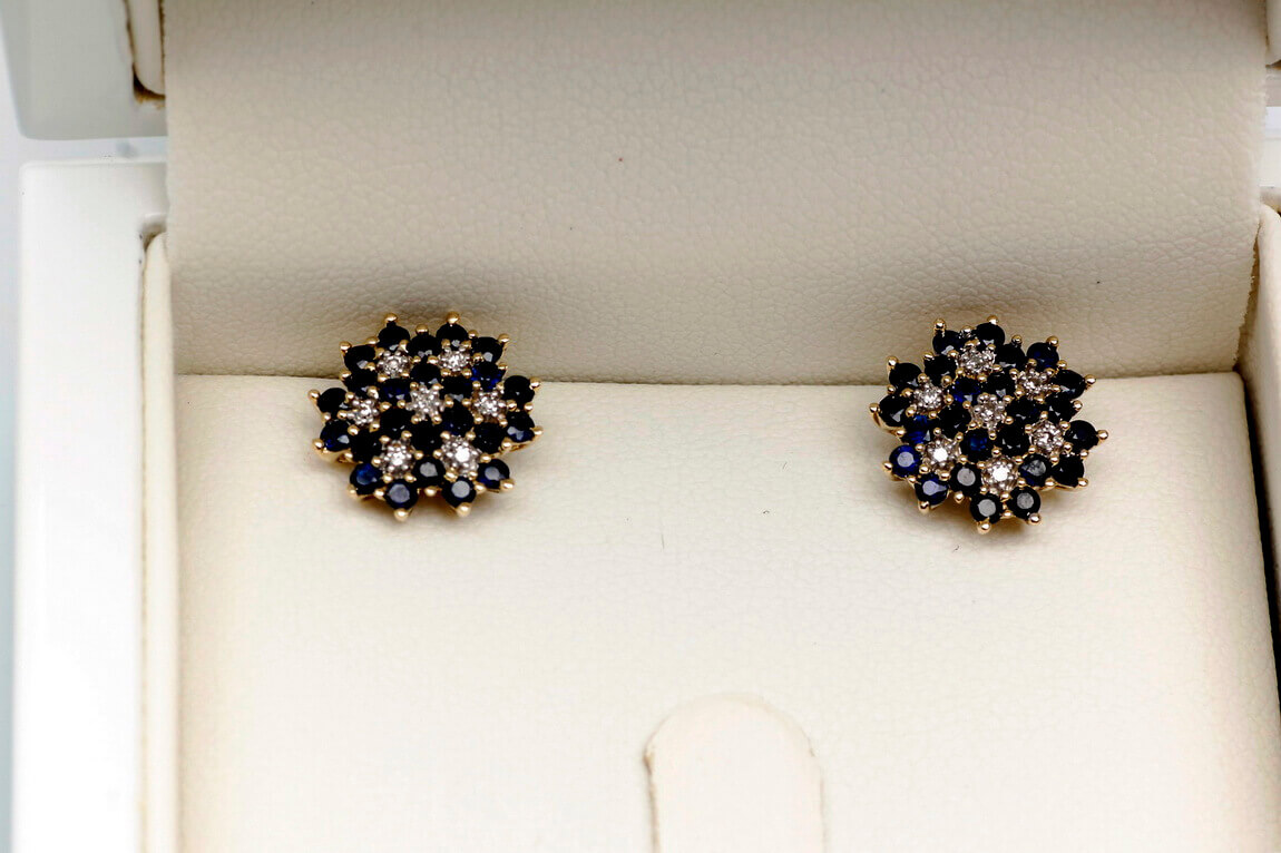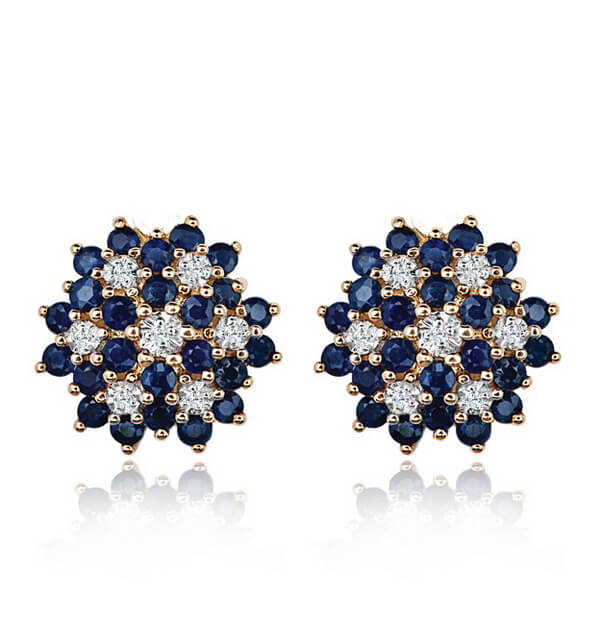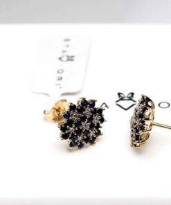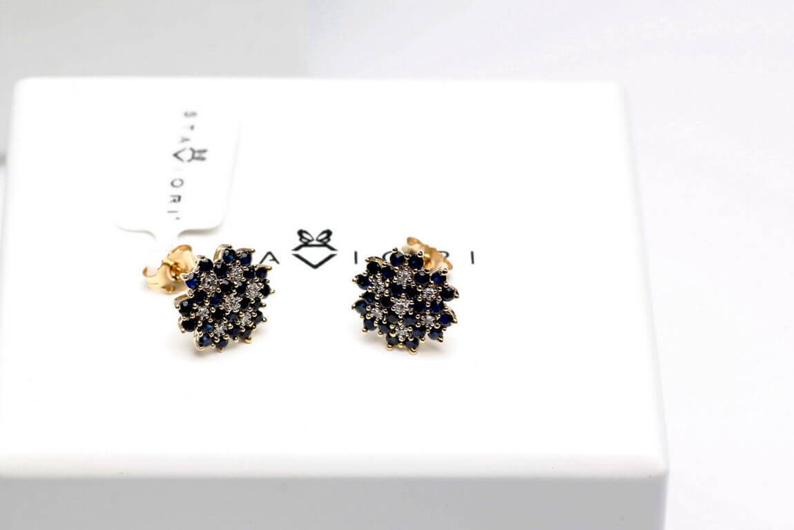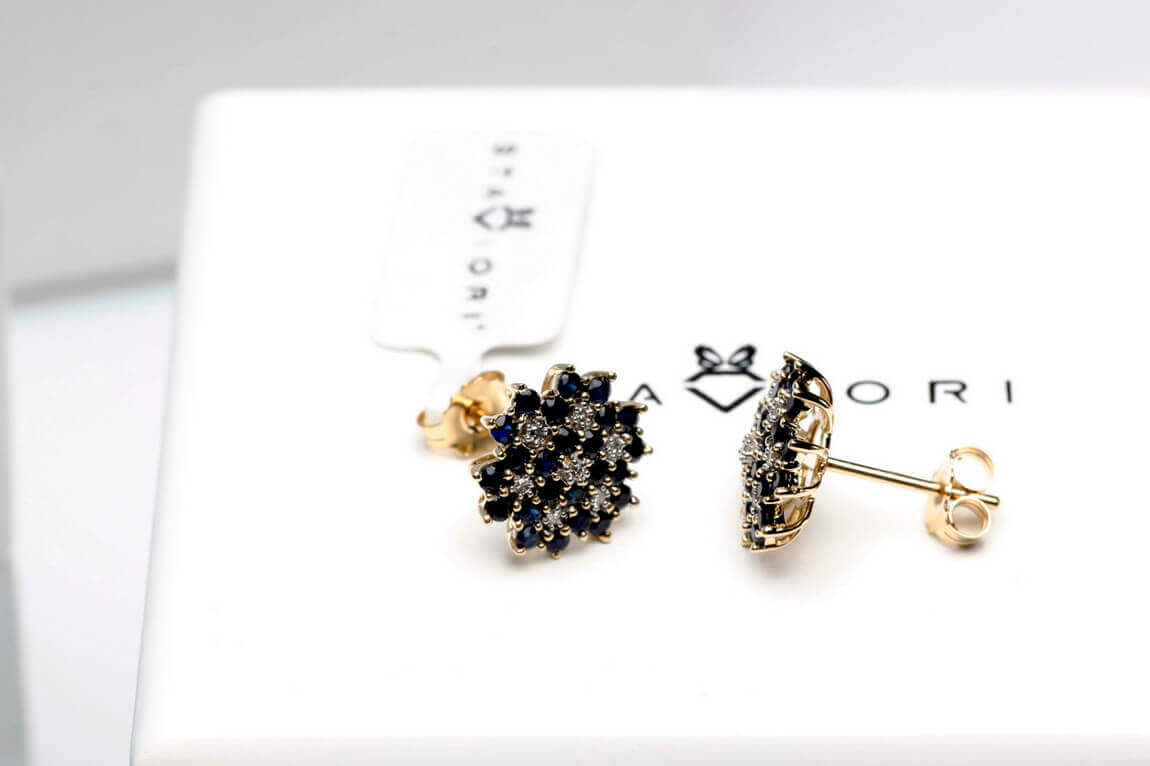 Zlaté náušnice se safíry a diamanty