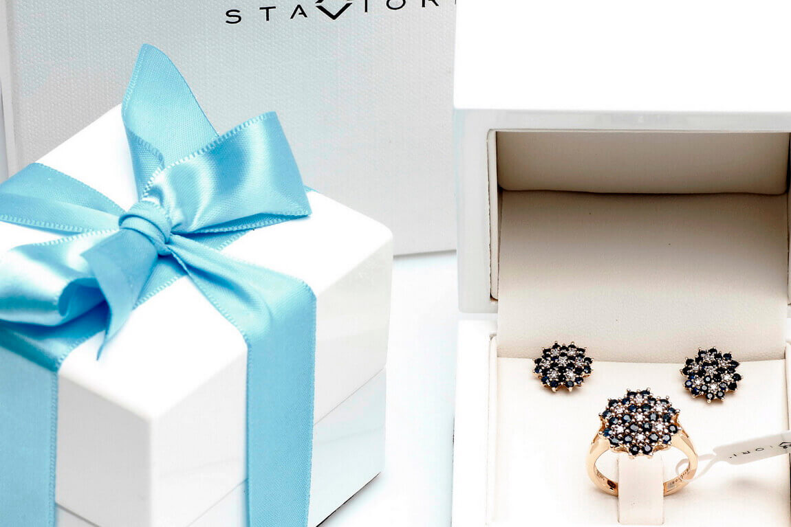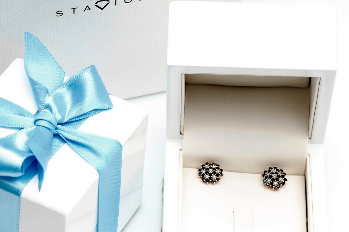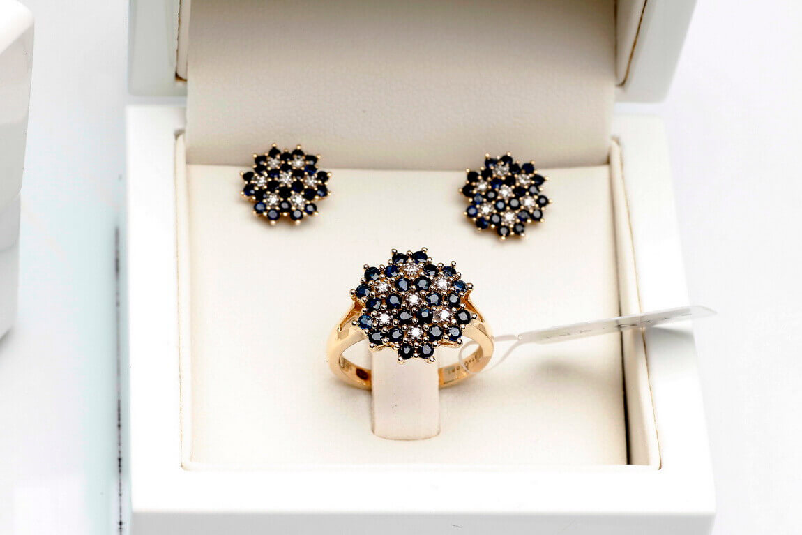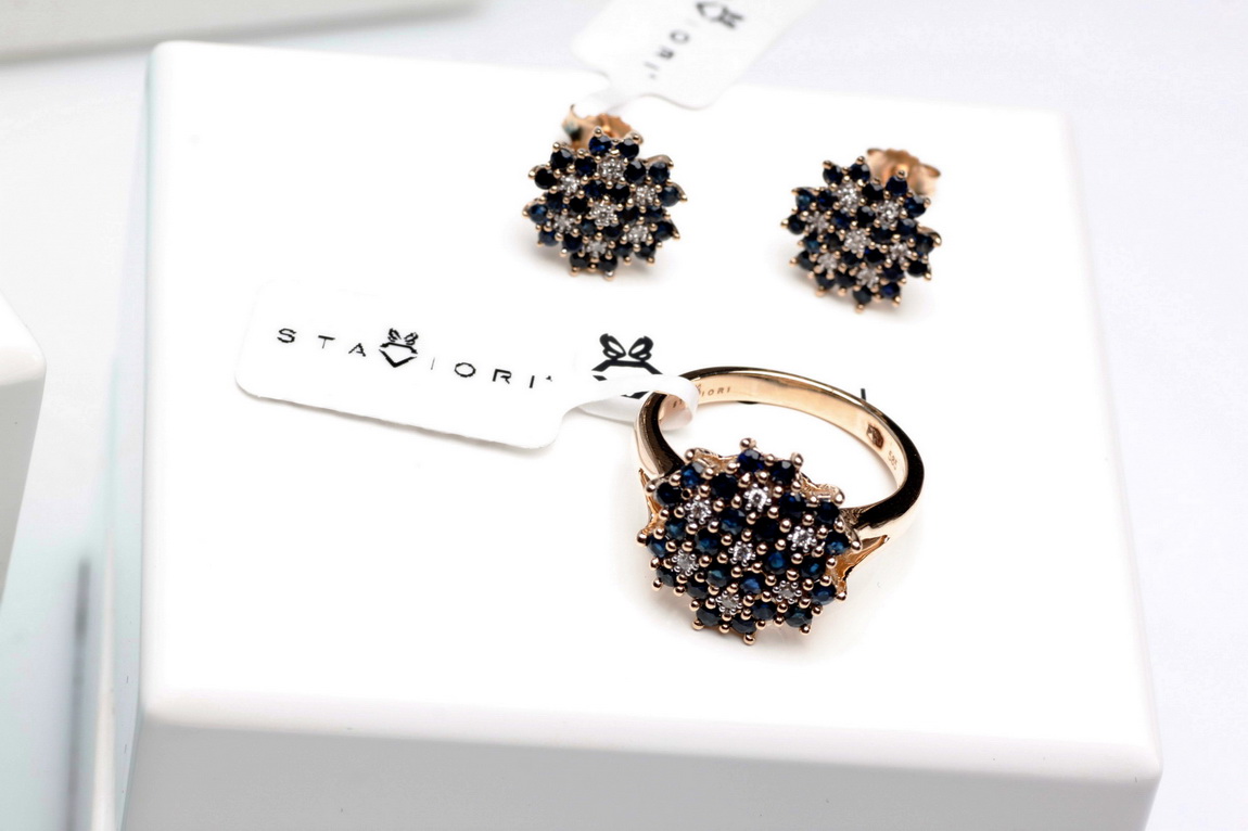 Zlaté náušnice se safíry a diamanty