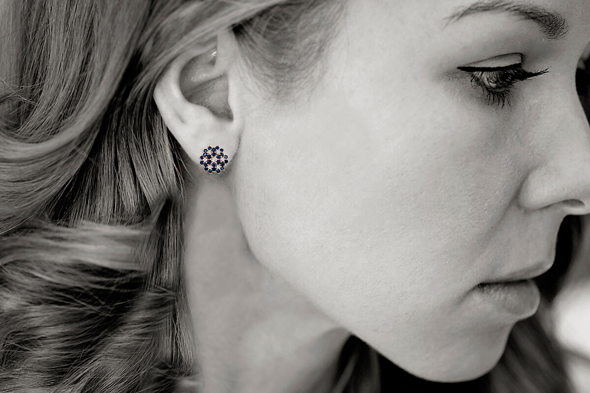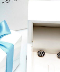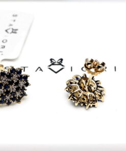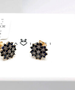 Olśniewające kolczyki-wkrętki w kształcie kwiatowego pąka, wykonane z 14-karatowego żółtego złota, misternie zdobione 40 naturalnymi szafirami o łącznej masie 1,44 ct oraz 14 drobnymi diamentami szlifu achtkant o łącznej masie 0,056 ct. Ich precyzyjna forma o średnicy 11 mm i delikatnym profilu podkreśla głębię intensywnego, niebieskiego odcienia szafirów, a subtelne iskierki diamentów dodają biżuterii wyrafinowanego blasku. Idealne dla miłośniczek elegancji z nutą luksusu.