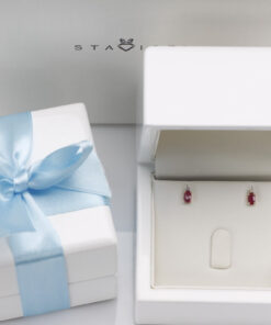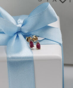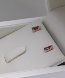 Staviori Naušnice. 2 Diamanty, achtkant výbrus, váha 0,015 ct., barva H-J, čistota I1-I2. 2 Rubíny, váha 0,56 ct.. Žluté Zlato 0,585. Velikosti 3x6 mm.