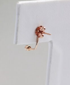 Stavení Naušnice. 4 Diamanty, briliantový výbrus, váha 0,10 ct, barva H, čistota I1. Růžové zlato 0,585. Délka 11 mm. Šířka 2 mm.