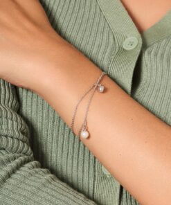 Jemný nastavitelný náramek z rhodiovaného stříbra o délce 16-19 cm. Model na dvojitém řetízku zdobí jedna bílá kulatá sladkovodní kultivovaná perla a decentní hladké srdíčko z lesklého stříbra. Je mimořádně lehký a elegantní, podtrhne ženskou jemnost a dodá noblesu každé stylizaci.