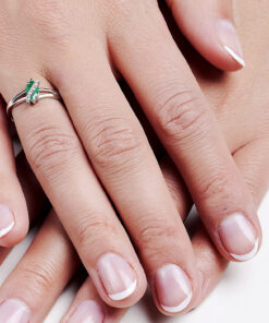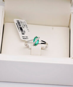 Úchvatný zásnubní prsten se smaragdem v marquise brusu z bílého zlata o ryzosti 0,585. Sytě zelený centrální kámen o hmotnosti 0,48 ct je obklopen jemnou linií pěti diamantů, které podtrhují jeho přirozenou krásu. Štíhlá lišta s mírným průstřihem dodává šperku lehký a moderní nádech. Jedná se o jedinečnou nabídku pro ženy, které oceňují eleganci a barevné drahé kameny.