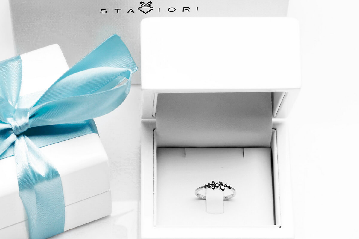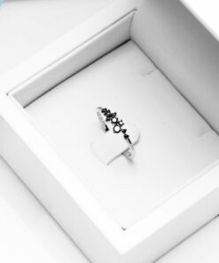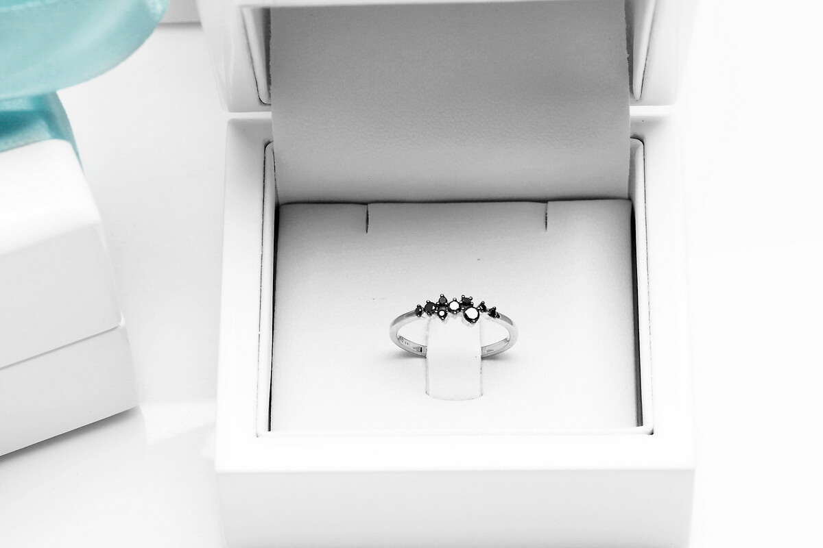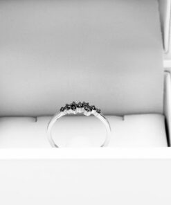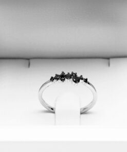 Krásný jemný prsten s černými diamanty z bílého zlata