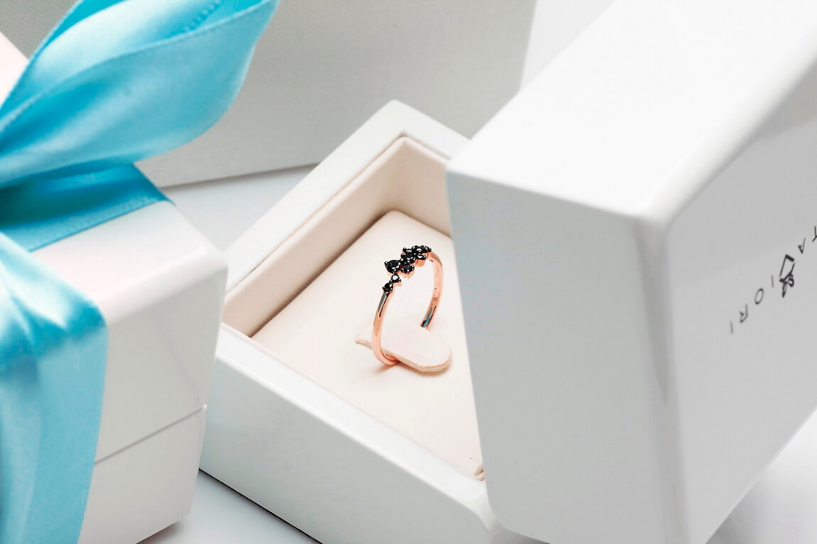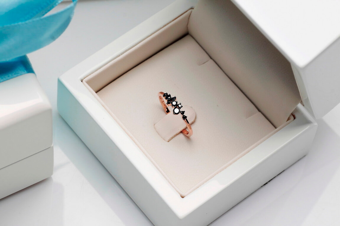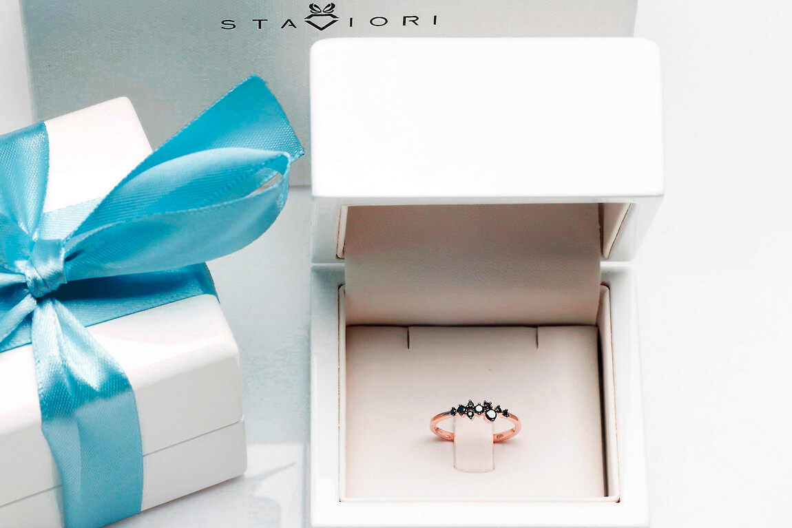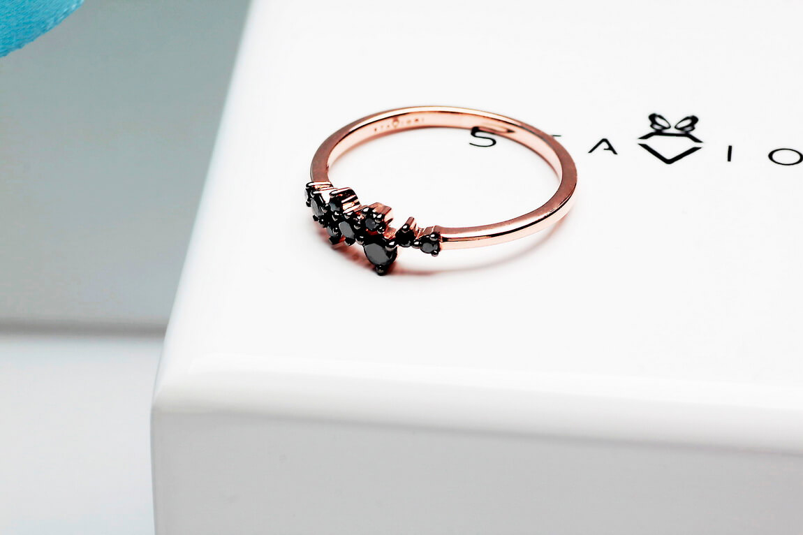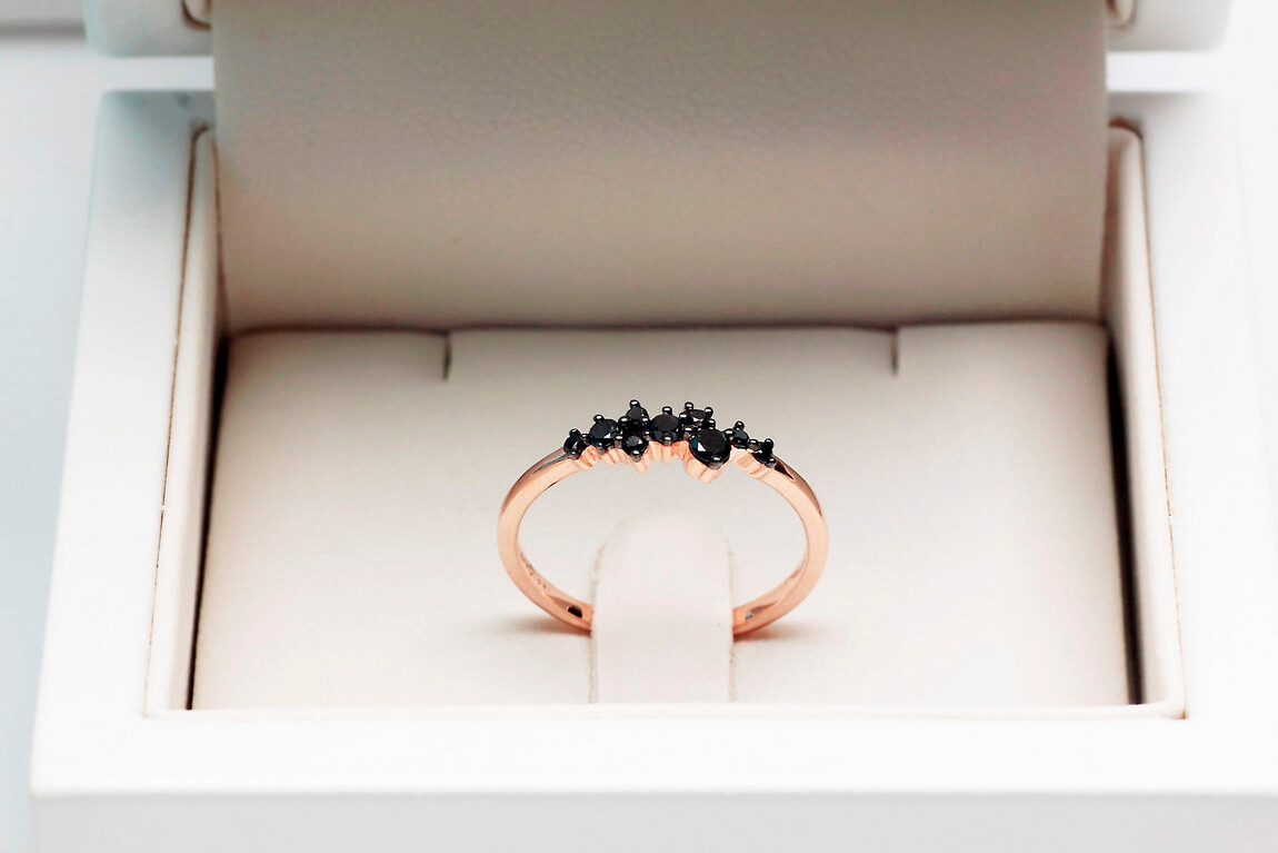 STAVIORI | prsten s černými diamanty v růžovém zlatě
