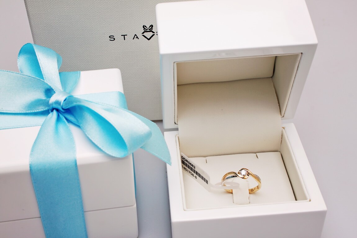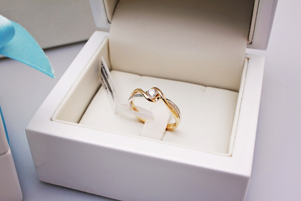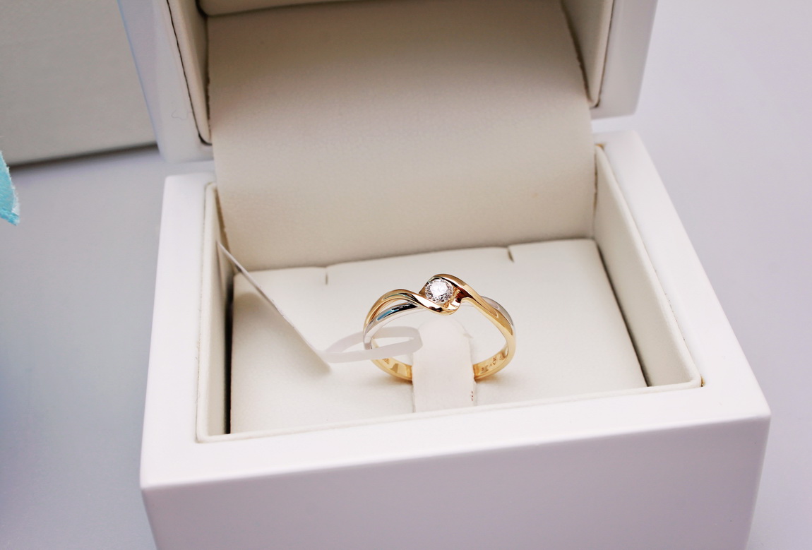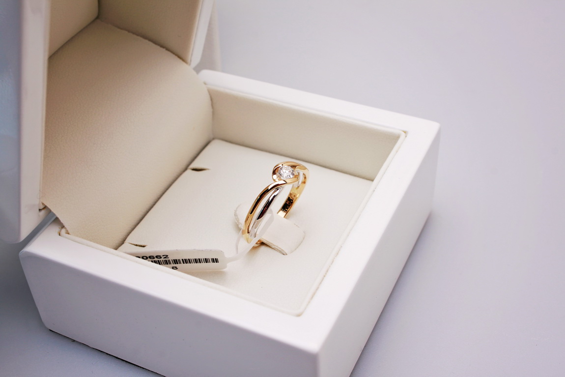 zásnubní prsten z dvoubarevného zlata s 0,15ct diamantem