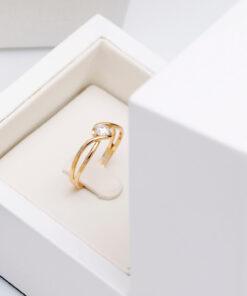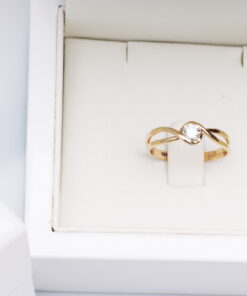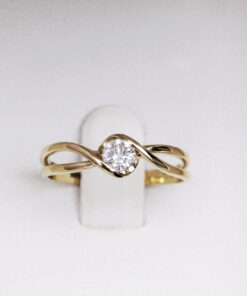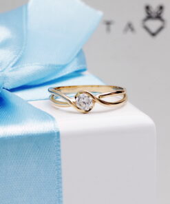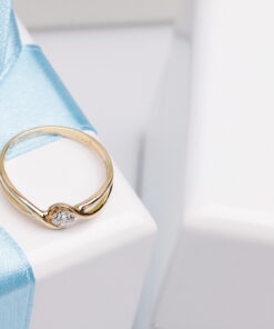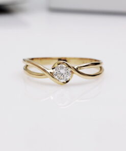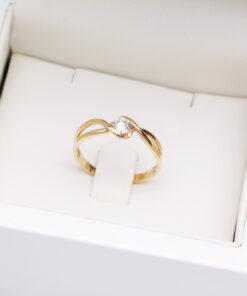 Subtelny i elegancki pierścionek zaręczynowy wykonany z 14-karatowego żółtego złota, którego finezyjnie spleciona obrączka delikatnie oplata lśniący brylant o masie 0,20 ct. Klasyczny szlif brylantowy w połączeniu z ciepłym odcieniem złota tworzy niezwykle kobiecą i harmonijną całość. To idealny wybór dla kobiet ceniących ponadczasowy styl, naturalne piękno i wygodę noszenia każdego dnia.