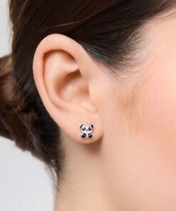 Dětské stříbrné náušnice PANDA sladké se smaltem