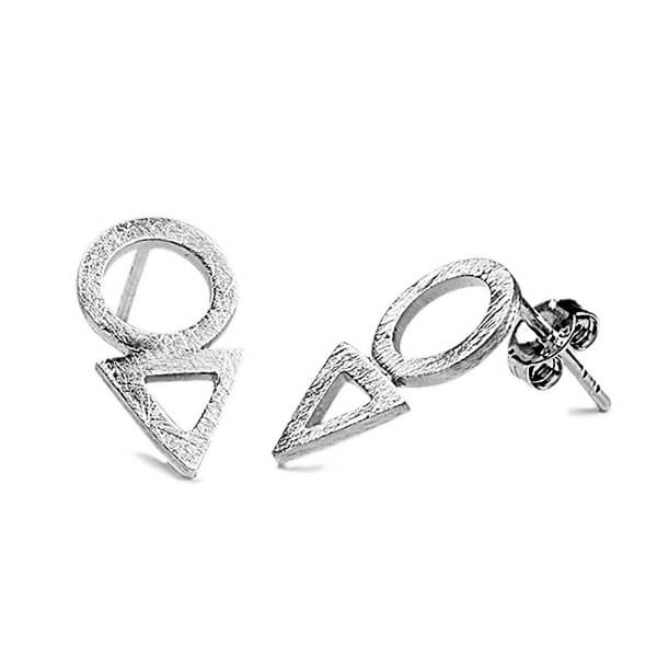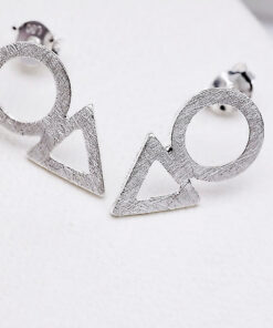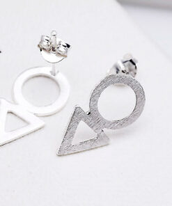 Nowoczesne kolczyki wykonane ze srebra próby 0,925 zachwycają geometrycznym designem. Połączenie koła i trójkąta w matowym, szczotkowanym wykończeniu sprawia, że biżuteria prezentuje się niezwykle oryginalnie i stylowo. To doskonały wybór dla kobiet, które cenią minimalizm i wyjątkowe detale. Subtelne, a jednocześnie wyraziste kolczyki dodadzą charakteru każdej stylizacji.