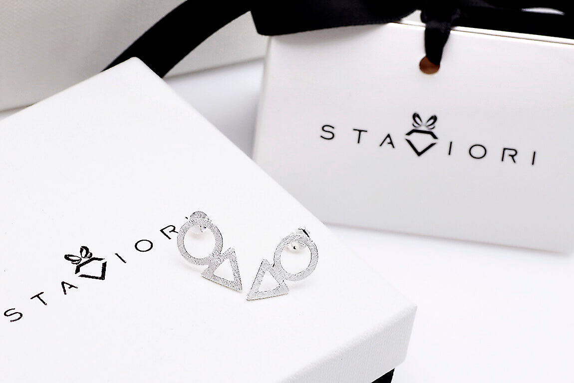 Staviori Naušnice. Stříbro 0,925. Délka 17 mm. Tyto odvážné nervózní stylu náušnice nabídne trvalé odvolání. Jejich trojúhelník a kruh střih kartáčované stříbrný design je nastavena na wow s jednoduchými liniemi, ale módní odvolání.