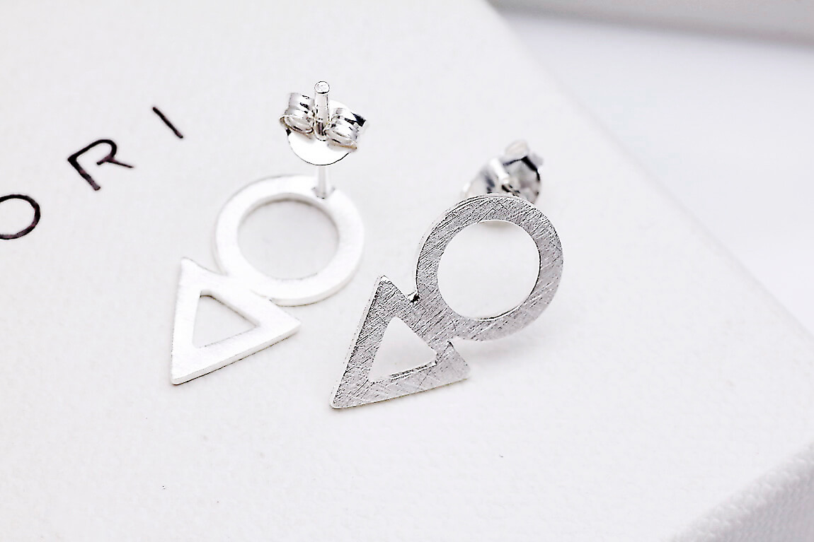 Geometrické stříbrné náušnice - trojúhelníky a kruhy