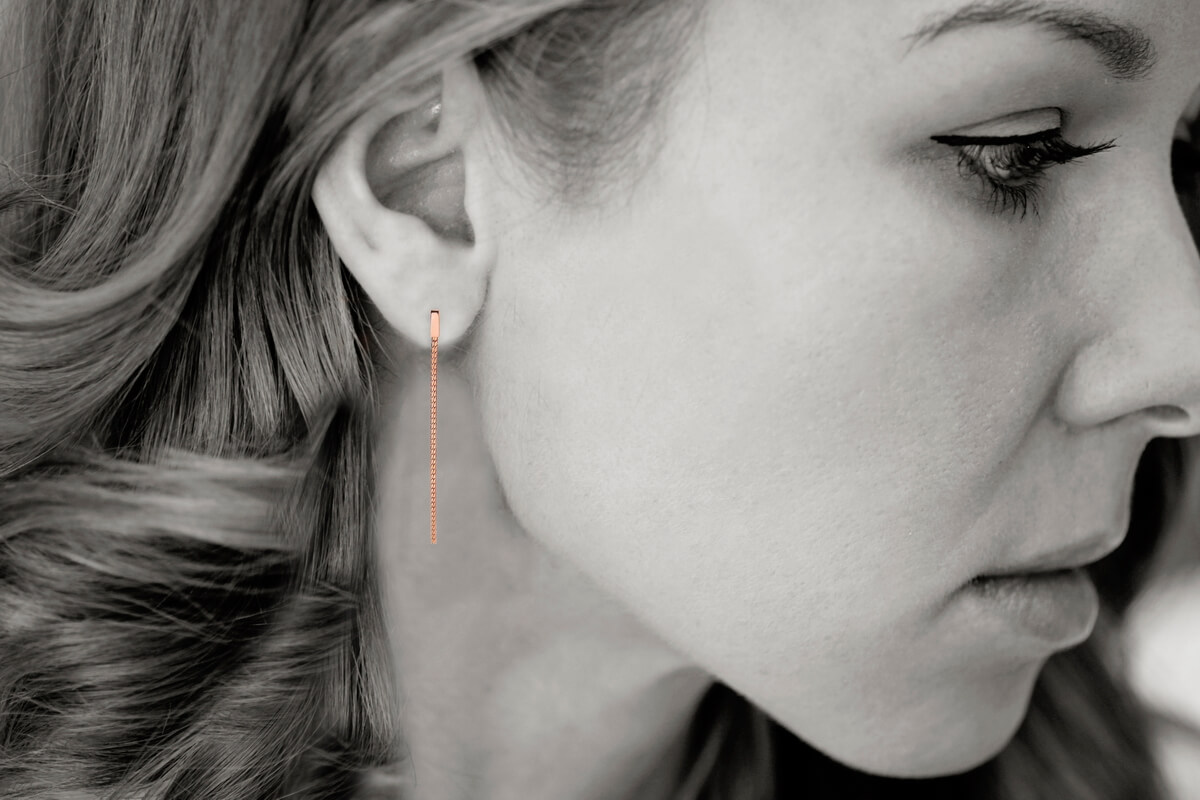 Eleganckie kolczyki wiszące wykonane ze srebra próby 0,925, pokryte różowym złotem. Smukłe serpentynowe ogniwa o długości 60 mm lśnią subtelnym blaskiem i poruszają się z gracją przy każdym kroku. Stylowy wybór na wyjątkowe okazje, jak i modny akcent do codziennych stylizacji.