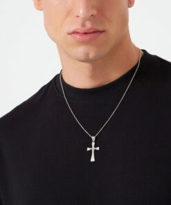 Elegancki srebrny krzyżyk wykonany z wysokiej jakości srebra próby 0,925. Delikatne żłobienia na powierzchni nadają mu wyjątkowego charakteru, podkreślając jego subtelny blask. Klasyczna forma w połączeniu z precyzyjnym wykonaniem sprawia, że jest to ponadczasowy symbol wiary i stylu. Doskonale prezentuje się zarówno solo, jak i w zestawieniu z innymi dodatkami.