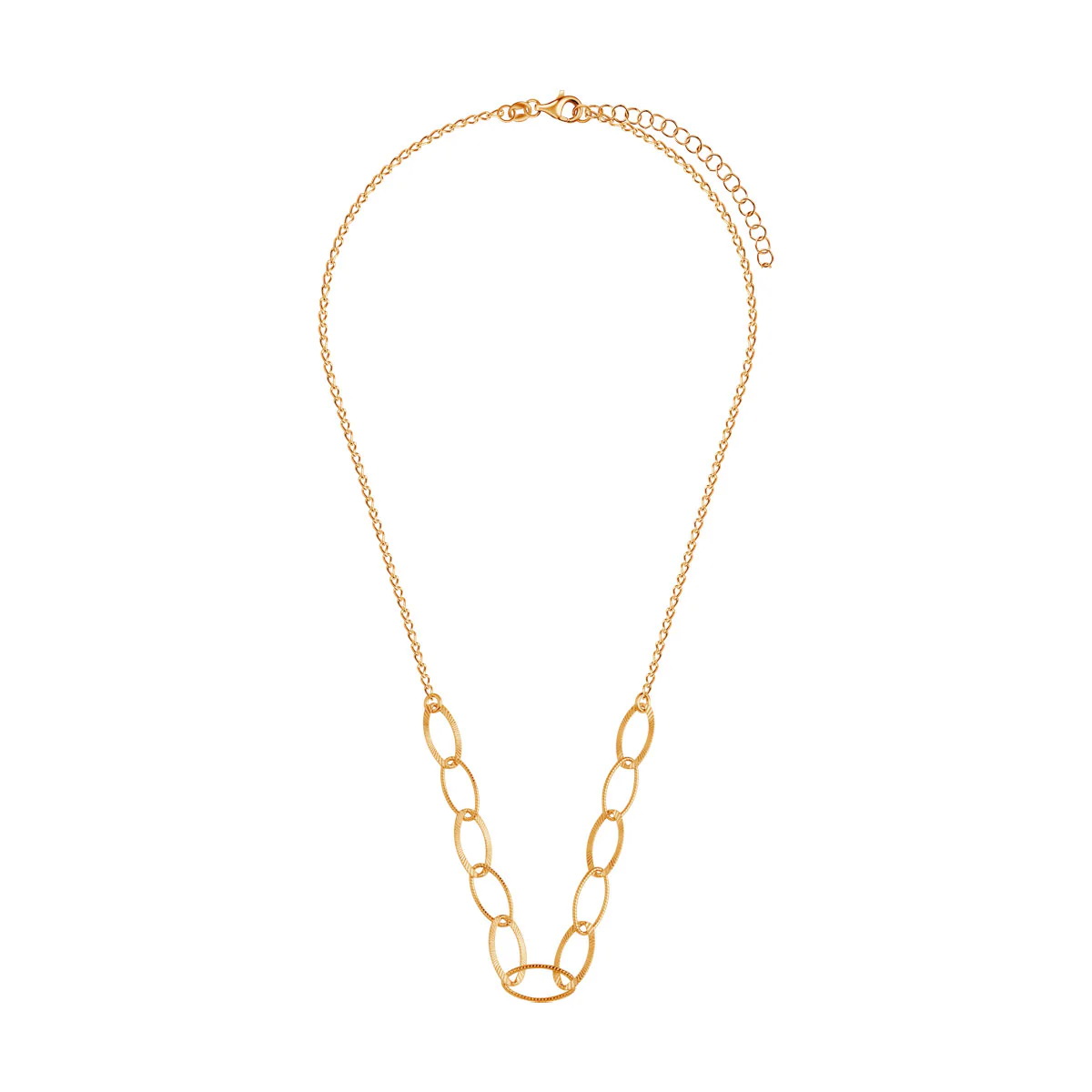 Elegancki naszyjnik wykonany ze srebra próby 0,925, pokryty szlachetną warstwą żółtego złota. Klasyczna forma i subtelny blask pozłacanego srebra sprawiają, że naszyjnik pięknie podkreśla kobiecą urodę oraz pasuje do każdej stylizacji – zarówno na co dzień, jak i na wyjątkowe okazje. Regulowana długość pozwala idealnie dopasować go do dekoltu i osobistych preferencji. To doskonały wybór dla kobiet ceniących ponadczasową elegancję i uniwersalny styl.