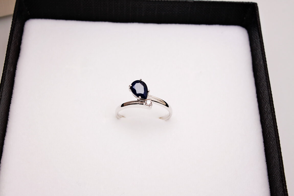 Zachwycający pierścionek ze srebra próby 0,925 z naturalnym szafirem o masie 0,80 ct w eleganckim kształcie kropli. Towarzysząca mu cyrkonia dodaje delikatnego blasku, tworząc wyjątkowe połączenie klasy i subtelnego romantyzmu. To idealny wybór dla kobiet ceniących oryginalne wzory i piękno naturalnych kamieni. Biżuteria o wyjątkowym charakterze i uroku.