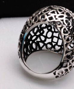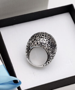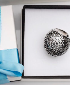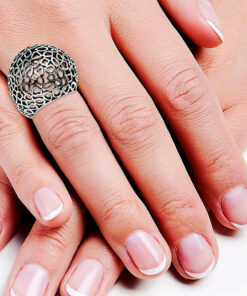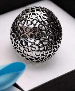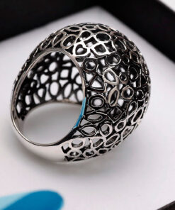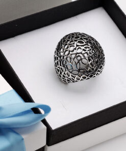 Efektowny pierścionek ze srebra próby 0,925, który zachwyca ażurowym wzorem inspirowanym organicznymi kształtami. Duża, kopułowa forma o szerokości 30 mm nadaje mu odważnego, artystycznego charakteru. To biżuteria, która przyciąga uwagę i doskonale podkreśla indywidualny styl swojej właścicielki. Idealny wybór dla kobiet, które lubią wyraziste dodatki.