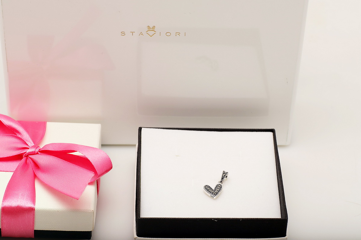 Uroczy wisiorek Staviori w kształcie serca wykonany z najwyższej jakości srebra próby 0,925. Jego powierzchnię zdobią połyskujące markazyty, które pięknie odbijają światło, nadając całości elegancji i delikatnego blasku vintage. Subtelny, romantyczny i kobiecy – idealny jako prezent dla ukochanej osoby lub drobny upominek dla samej siebie.