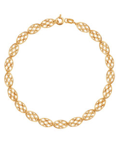Zachwycająca ażurowa bransoletka wykonana z żółtego złota próby 585 to połączenie delikatności i klasycznego piękna. Subtelny, misterny wzór nadaje jej lekkości i sprawia, że prezentuje się wyjątkowo kobieco. Idealna do noszenia zarówno na co dzień, jak i przy wyjątkowych okazjach. Dzięki swojej finezyjnej formie stanowi doskonałe uzupełnienie każdej stylizacji.