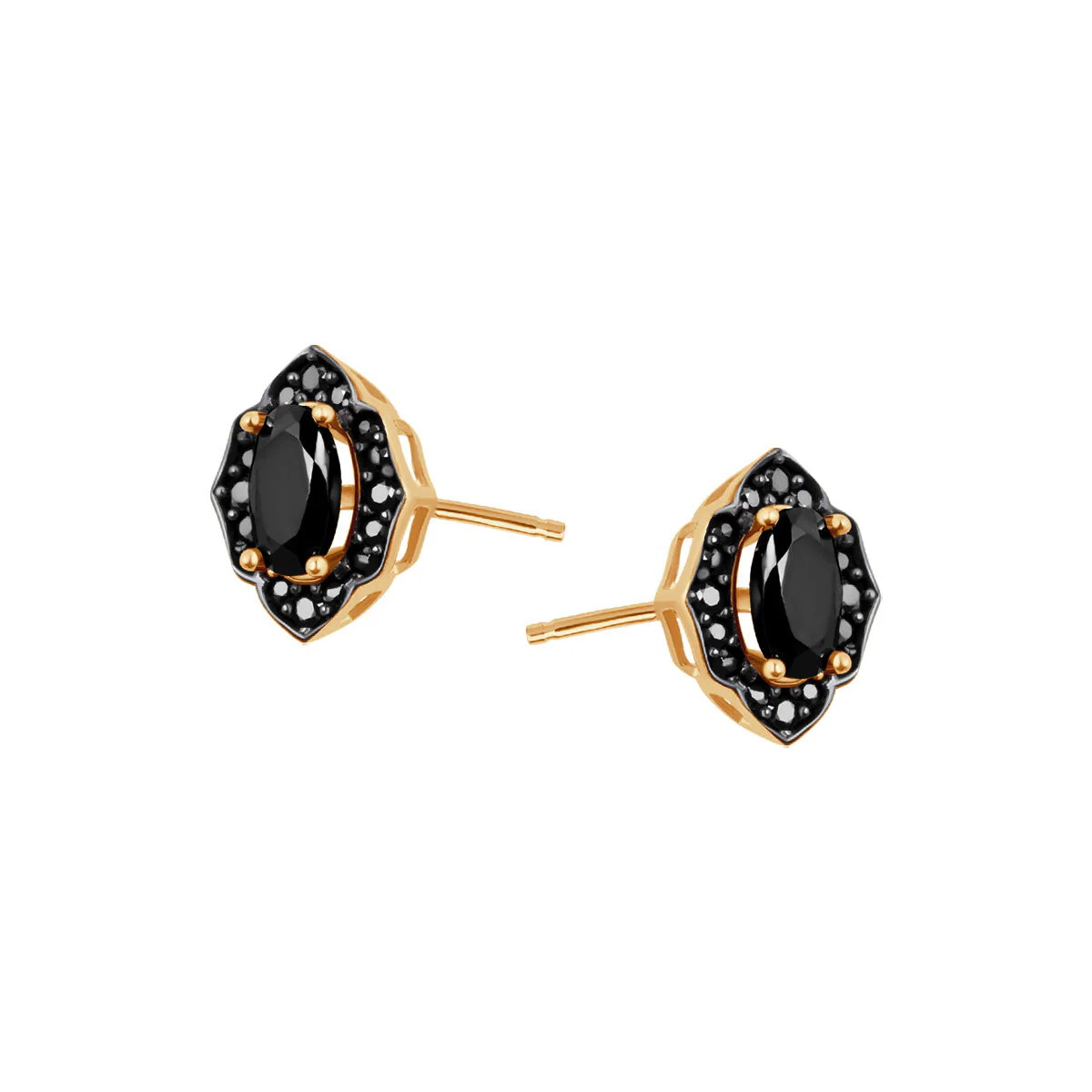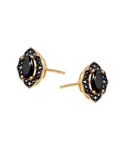 Stylowe kolczyki na sztyfcie wykonane z żółtego złota próby 0,333, ozdobione czarnymi cyrkoniami w wyjątkowym, ornamentalnym wzorze. Centralna, owalna cyrkonia przyciąga wzrok eleganckim połyskiem, a otaczające ją drobniejsze kamienie dodają całości głębi i wyrazistości. Ten klasyczny model w nowoczesnym wydaniu to idealny wybór zarówno do codziennych stylizacji, jak i na wieczorne wyjścia.