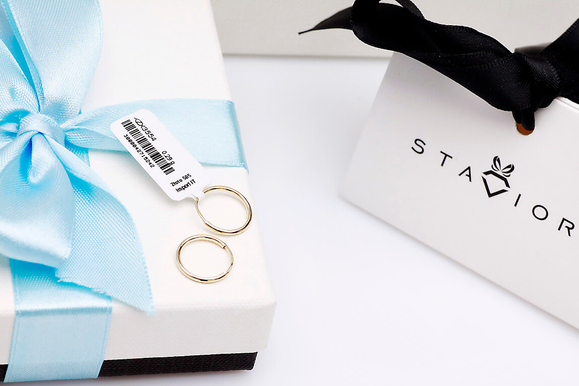 Staviori Naušnice. Žluté Zlato 0,585. Šířka 12 mm. Šířka 1 mm.