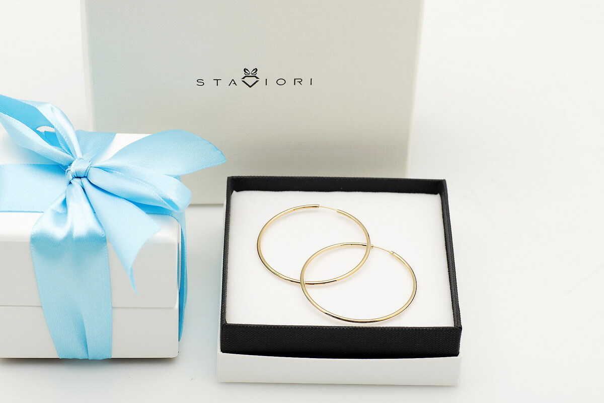 Staviori Naušnice. Žluté Zlato 0,585. Šířka 44 mm.