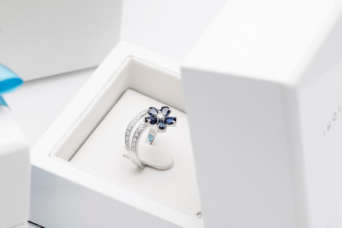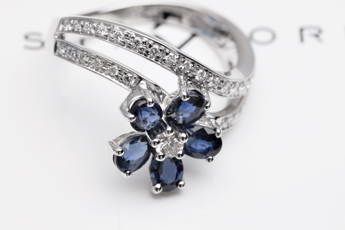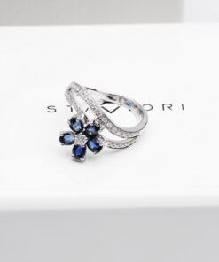 Exklusiver Ring | Blume mit Saphiren und Diamanten aus 750er Gold
