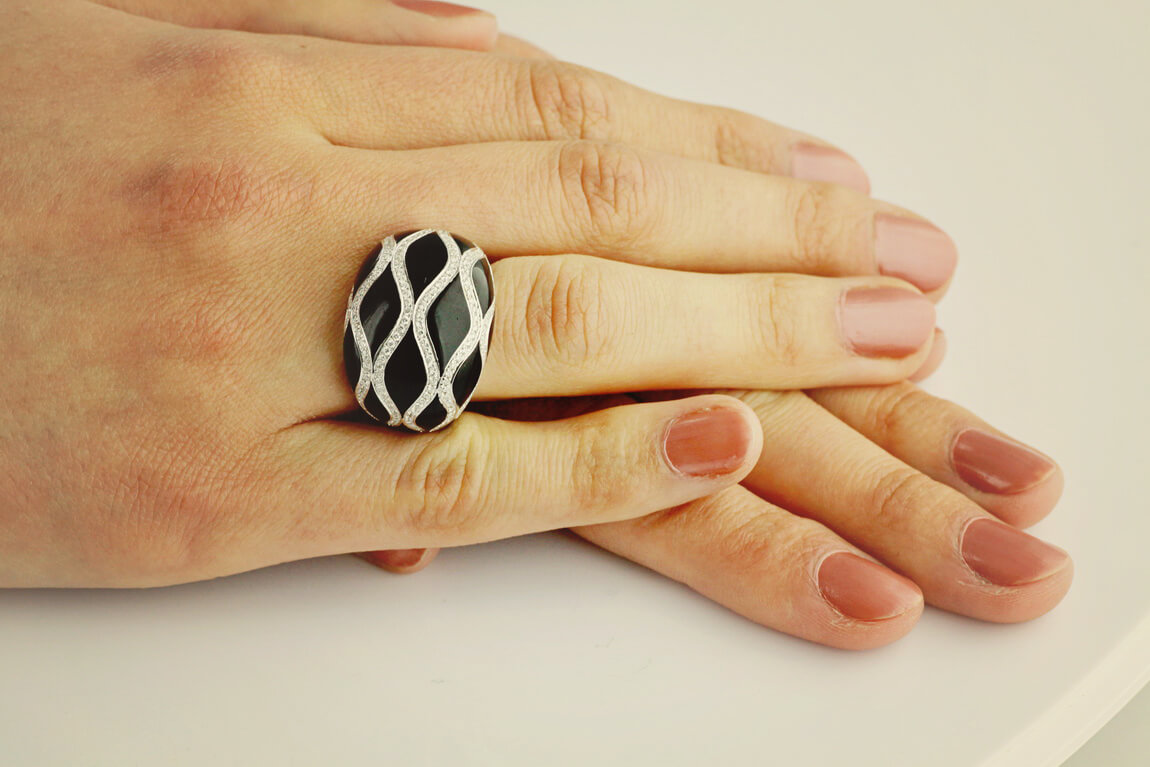 Exklusiver | großer Ring mit Diamanten und schwarzem Lack aus 18K Gold