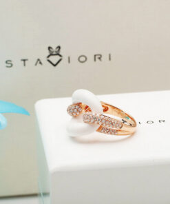 Exklusiver Ring aus 750er Roségold mit weißem Achat und Diamanten