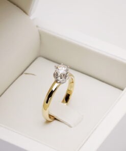 Elegancki pierścionek zaręczynowy Staviori PXD1555Y zachwyca klasycznym pięknem i doskonałą jakością wykonania. Lśniący brylant o masie 0,50 ct, barwie G i czystości SI1-SI2, subtelnie oprawiono w koronę z białego złota, która pięknie podkreśla jego blask. Gładka obrączka z 18-karatowego żółtego złota tworzy harmonijne połączenie nowoczesności z ponadczasową elegancją. To wyjątkowy symbol miłości, który idealnie dopełni moment zaręczyn.