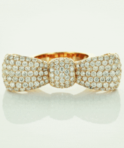 Spektakularny pierścionek zaręczynowy w kształcie kokardy, wykonany z żółtego złota próby 750 i wysadzany aż 175 brylantami o łącznej masie 2,84 ct. Lśniące diamenty tworzą niezwykle efektowną kompozycję, która przyciąga wzrok swoim blaskiem i elegancją. To wyjątkowy model dla kobiet ceniących biżuterię luksusową, pełną wdzięku i klasy.