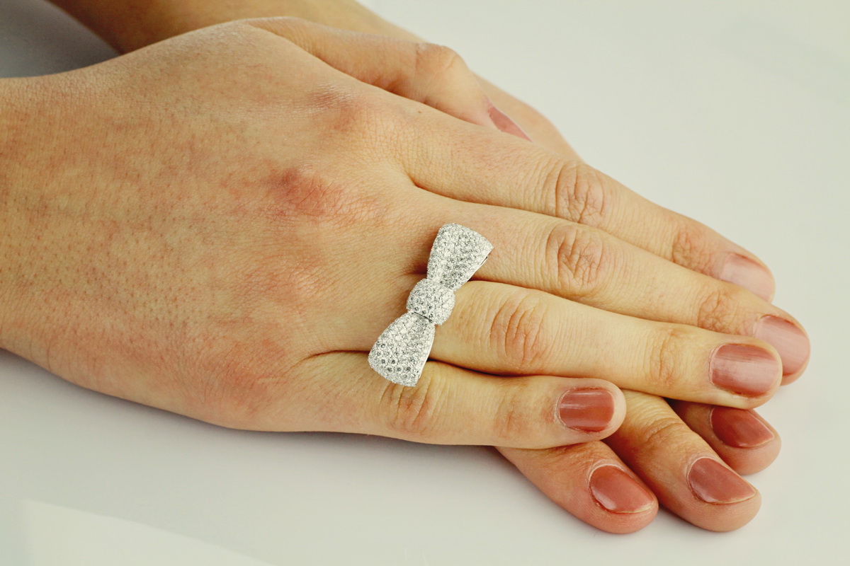 Exclusive | pierścionek złoty próby 750 z brylantami w kształcie kokardy