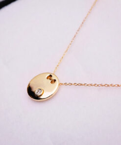 Elegancki naszyjnik z żółtego złota próby 0,585, który zachwyca minimalistyczną formą i blaskiem diamentu o szlifie brylantowym. Delikatna, okrągła zawieszka z subtelnie oprawionym kamieniem doskonale podkreśla szyję i nadaje stylizacji wyjątkowego charakteru. To propozycja dla kobiet ceniących klasykę z nowoczesnym akcentem. Doskonały na co dzień i na wyjątkowe okazje.