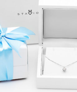 Subtelny naszyjnik Staviori z olśniewającym brylantem o masie 0,50 ct, wykonany z 14-karatowego białego złota. Kamień o wyjątkowej czystości VS1 i barwie F zachwyca swoim blaskiem, a delikatna oprawa w formie koszyczka podkreśla jego doskonały szlif. To klasyka w najpiękniejszym wydaniu – ponadczasowy symbol elegancji i dobrego smaku, który idealnie dopełni każdą stylizację.