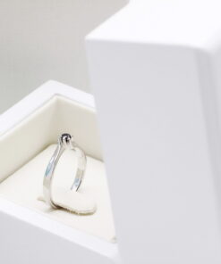 Staviori Pierścionek. 1 Diament, kolor czarny, szlif brylantowy, masa 0,10 ct.. Białe Złoto 0,585. Szerokość obrączki ok. 2,3 mm. Średnica korony ok. 4,3 mm. Wysokość 4,7 mm.