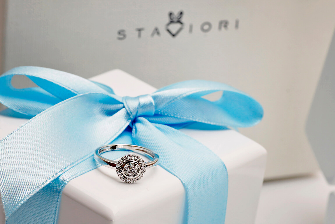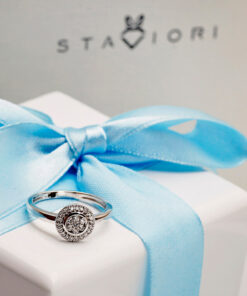 Zjawiskowy pierścionek z białego złota, ozdobiony aż 28 diamentami o łącznej masie 0,15 ct, zachwyca elegancją i blaskiem. Centralna kompozycja w formie okrągłej korony o średnicy 12 mm przyciąga spojrzenia dzięki misternemu ułożeniu brylantów w dwóch rzędach. Ten finezyjny projekt łączy nowoczesność z ponadczasową klasyką, tworząc wyjątkowy dodatek dla kobiet ceniących subtelny luksus. Idealny jako prezent z okazji zaręczyn, rocznicy lub wyjątkowego momentu.