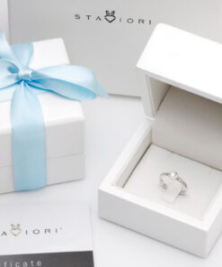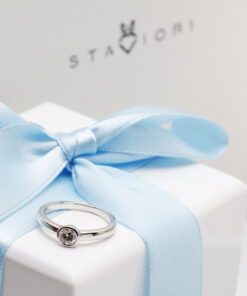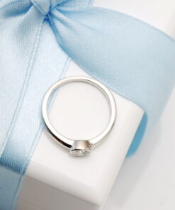 Klasyczny pierścionek zaręczynowy z białego złota 14K, który urzeka subtelną formą i perfekcyjnym blaskiem diamentu o masie 0,15 ct. Kamień osadzony w gładkiej, pełnej oprawie typu bezel podkreśla nowoczesny charakter i zapewnia komfort noszenia na co dzień. Minimalistyczna elegancja, która zachwyca prostotą i ponadczasowym stylem.