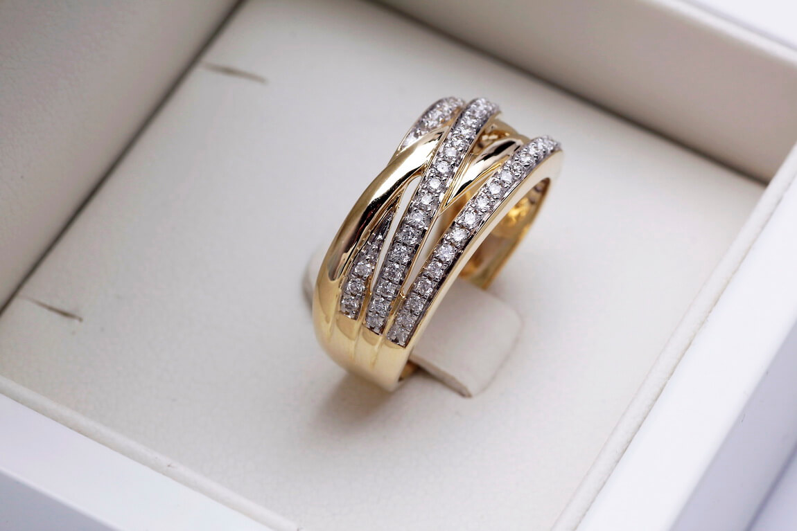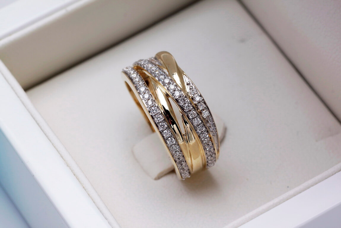 Exklusiver breiter Ring aus Gold mit Diamanten in zweifarbigem Gold