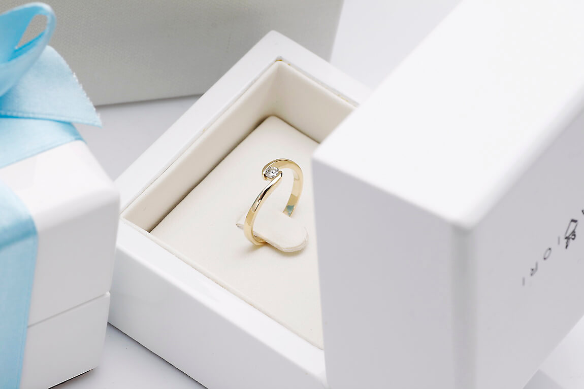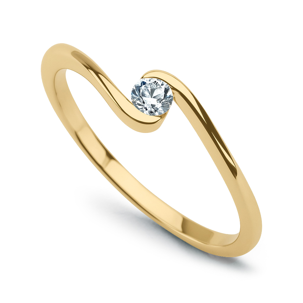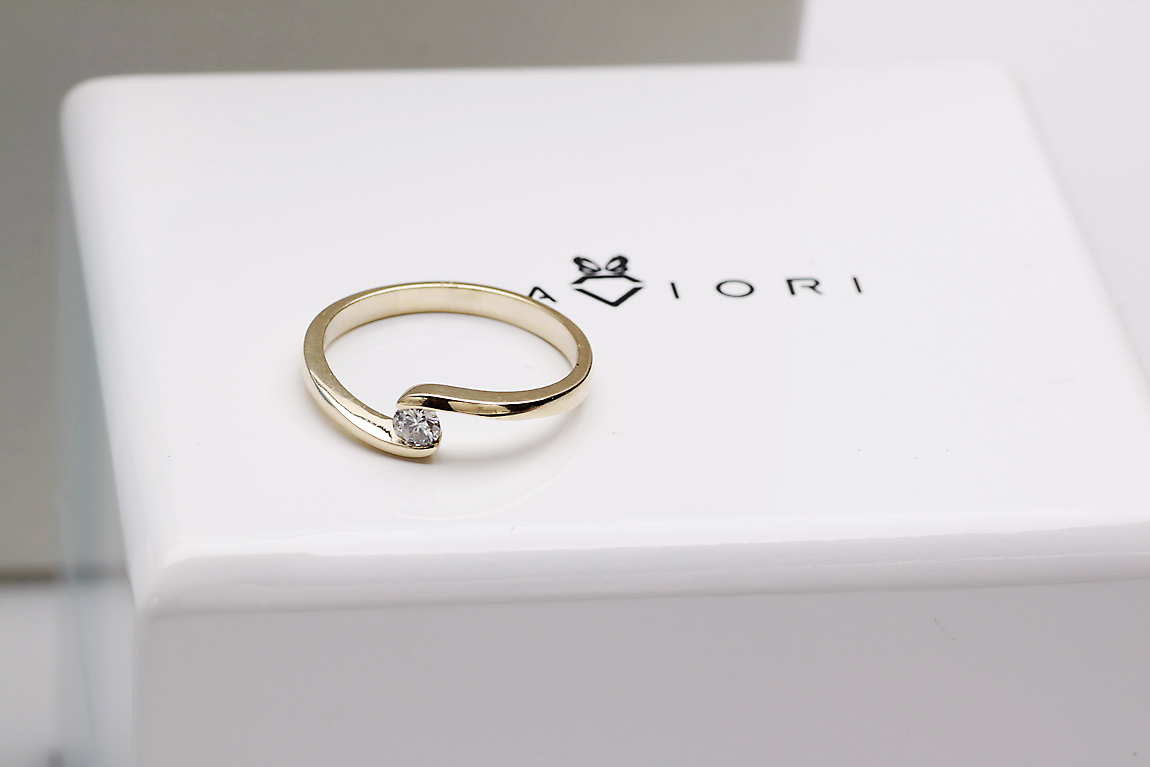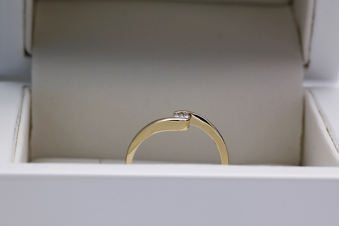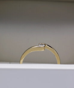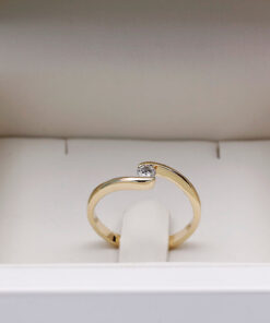 Delikatny i pełen wdzięku pierścionek zaręczynowy wykonany z 14-karatowego żółtego złota. Jego subtelna linia otula brylant o masie 0,10 ct, tworząc harmonijną kompozycję elegancji i prostoty. Minimalistyczny design w połączeniu z ciepłym blaskiem złota sprawia, że pierścionek ten idealnie podkreśla naturalne piękno i uczucie, które symbolizuje.