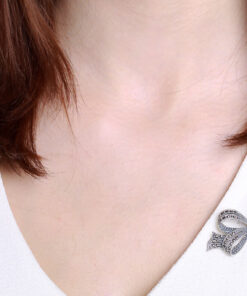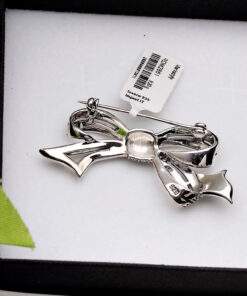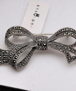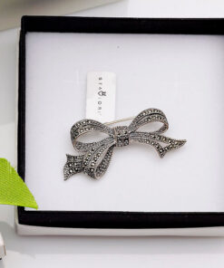 Elegancka broszka w kształcie kokardy, wykonana z rodowanego srebra próby 0,925. Jej finezyjny kształt zdobią błyszczące markazyty, które pięknie odbijają światło i nadają całości wyrafinowanego charakteru. Stylowa i kobieca, będzie doskonałym dodatkiem zarówno do codziennych stylizacji, jak i eleganckich kreacji wieczorowych.